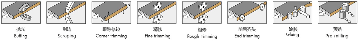 本機(jī)適用于實(shí)木板、纖維板、刨花板等板材工件的直線封邊,封邊材料可用實(shí)木條、PVC、三聚氰胺、薄木皮等。